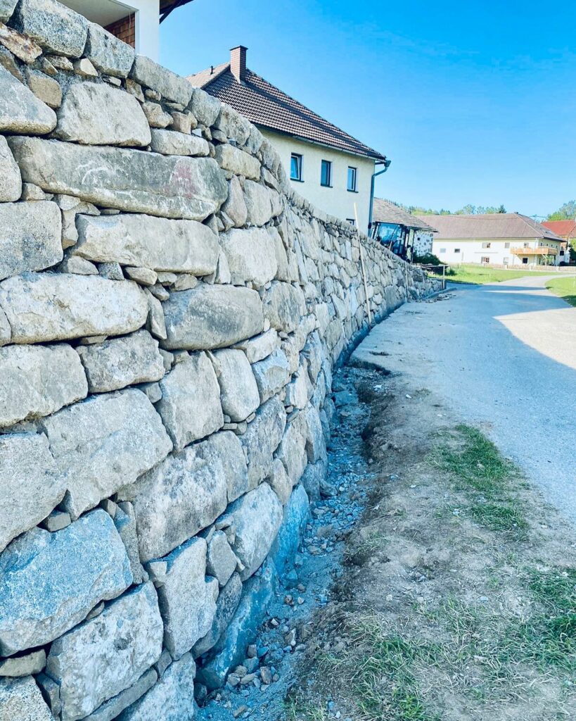 Steinschlichtung als Gartenmauer aus Mühlviertler Granit.
