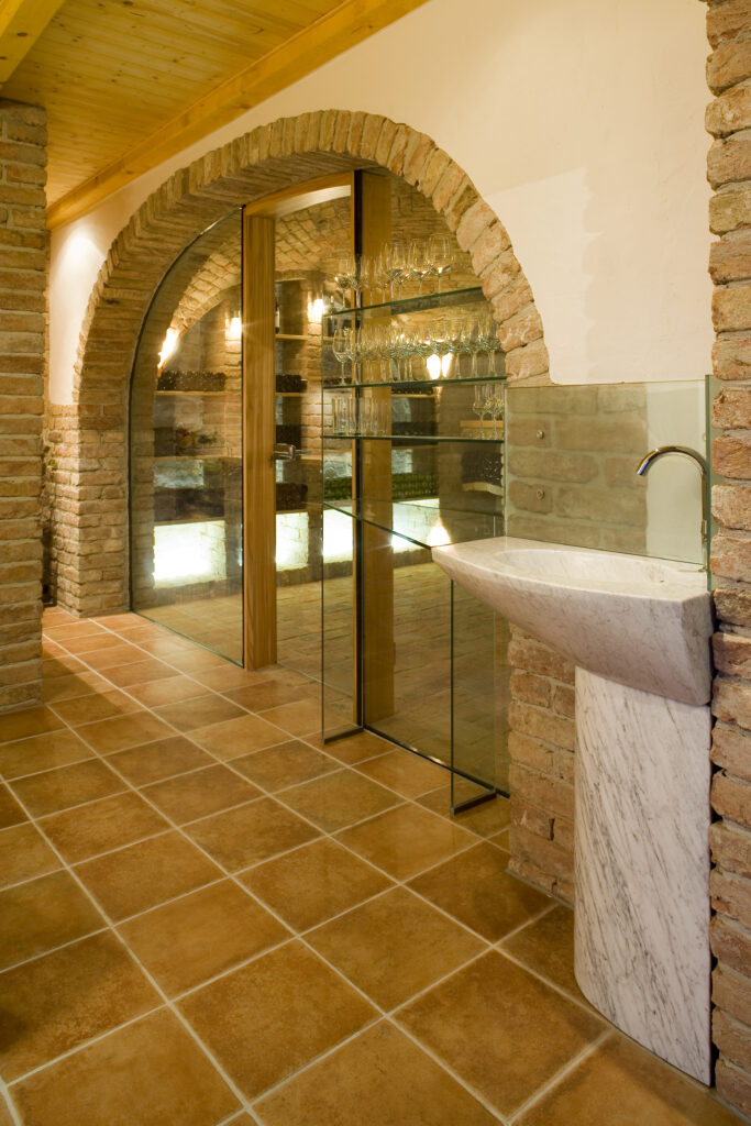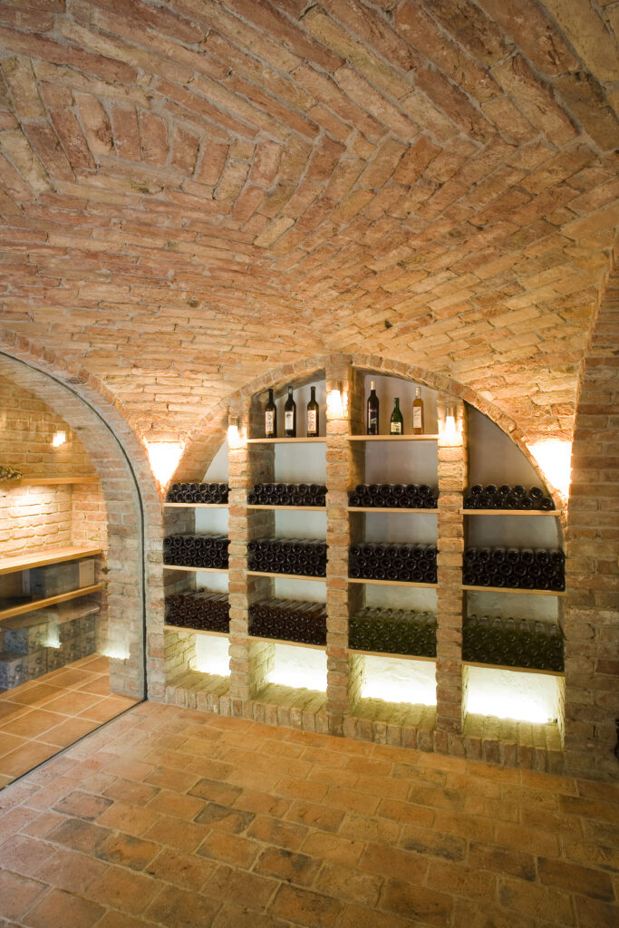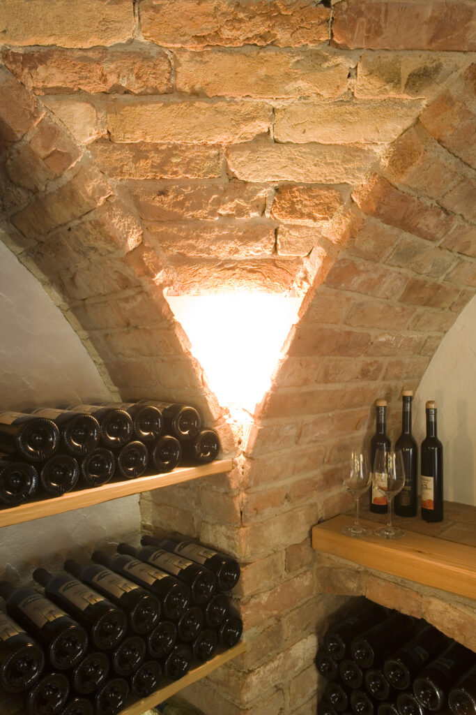 Böhmisches Platzlgewölbe und Weinlagernischen gemauert aus antiken Ziegeln in Sichtausführung.