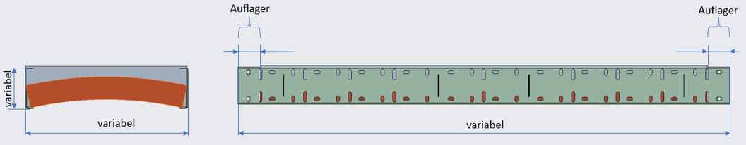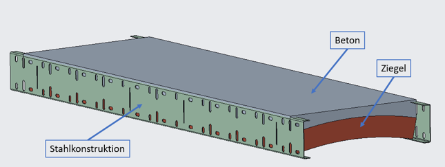 Standard spans of up to six meters are possible, for larger spans, the statics of the steel girders must be steel girders must be modified individually. The selected type of vault, the "traverse vault" or also called the "Prussian cap", is very space-saving because through the low ceiling height there is no minimum room height and no vault approaches are necessary.
