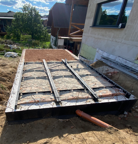 With the precast truss elements, you save valuable time on the construction site. We guarantee particularly fast work. The elements, which are prefabricated in the factory in Grünbach near Freistadt, are moved and assembled on site within a very short time using a crane. No further work steps are necessary and the element slab can be walked on immediately. By concreting a clean layer, the prefabricated vault is on a par with a standard precast concrete floor in terms of load-bearing capacity, function and further processing. We also install empty piping for the lighting.