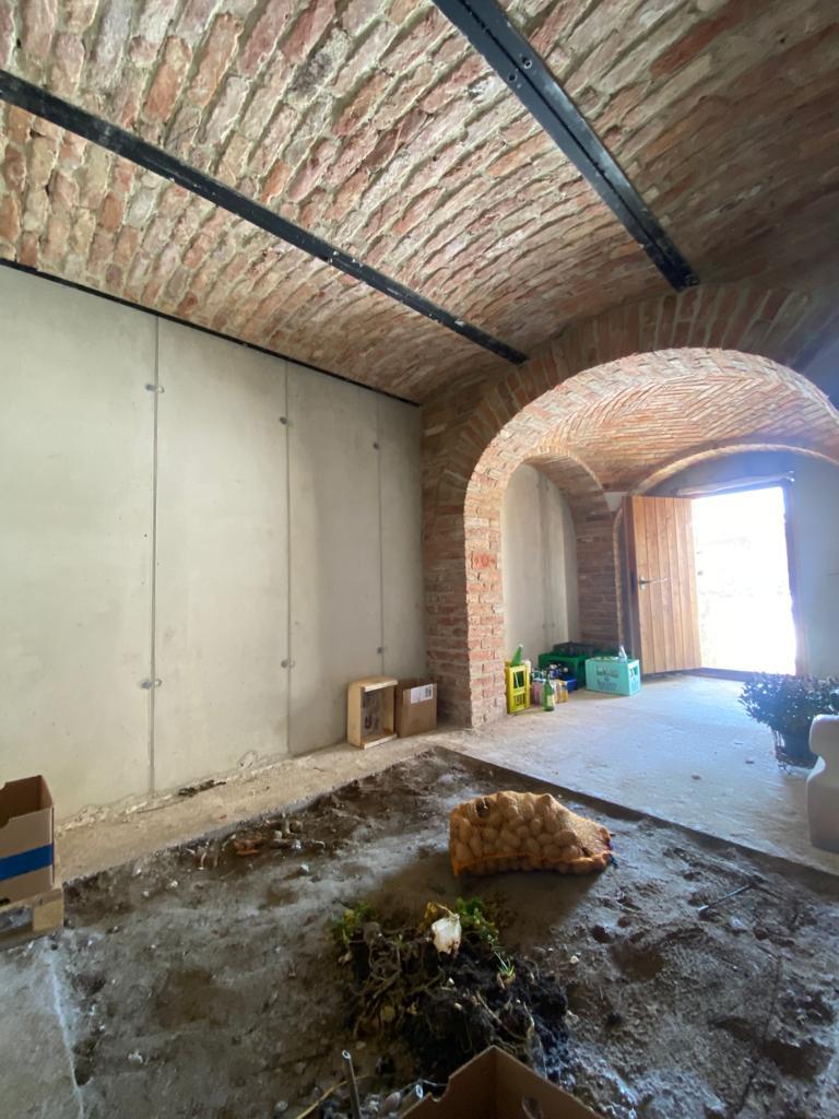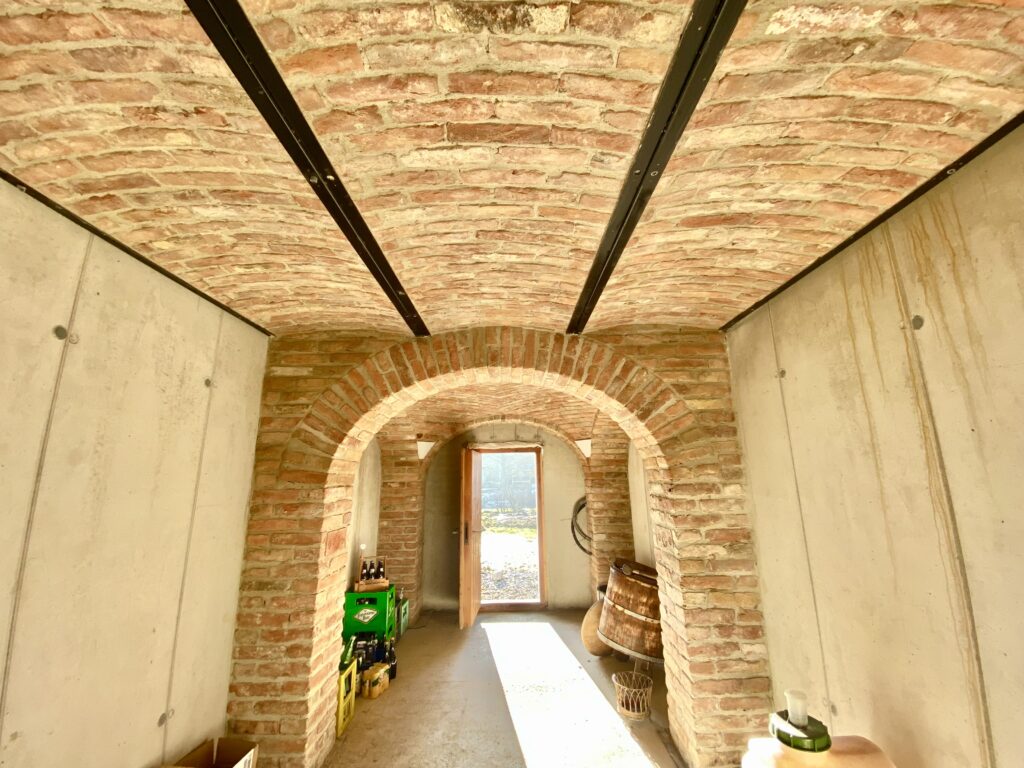 Kombination Böhmisches Platzlgewölbe (vor Ort gemauert) und Fertigteilgewölbe.